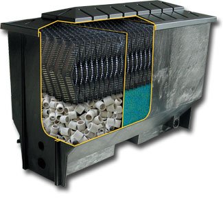 Komory jsou naplněny plastickým filtračním materiálem plástvového typu a filtrační podložkou. Pro optimální biologický filtrační výkon doporučujeme sera siporax pond.