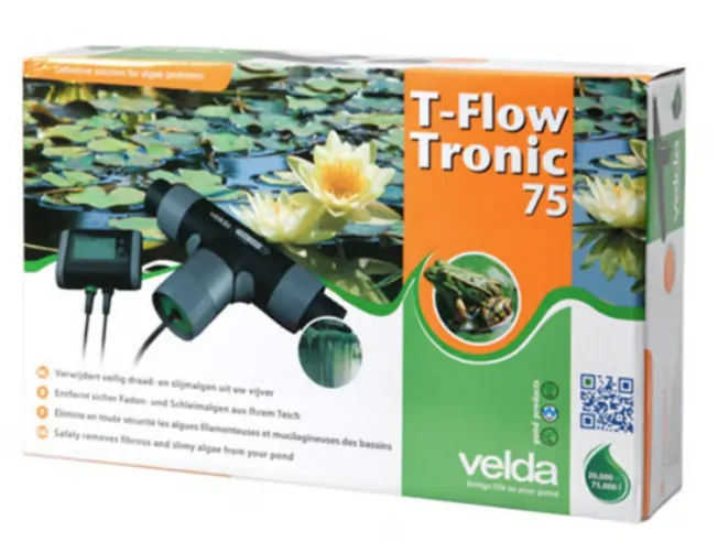 Díky navrženému průtoku vody je účinek velmi efektivní a lze jej dávkovat velmi přesně. Jádro T-Flow Tronic se skládá z anody ze slitiny mědi vyvinuté společností Velda a katody z nerezové oceli. Pomocí mikroprocesoru jsou generovány impulsy, které proudí do jádra T-Flow Tronic. Tím se uvolňují kladně nabité ionty mědi. I v nízkých koncentracích poskytují tyto ionty mědi přírodní ochranu proti řasám. Obsah mědi 0,2 až 0,3 ppm stačí k tomu, aby zničil vláknité řasy a zastavil jejich další tvorbu.